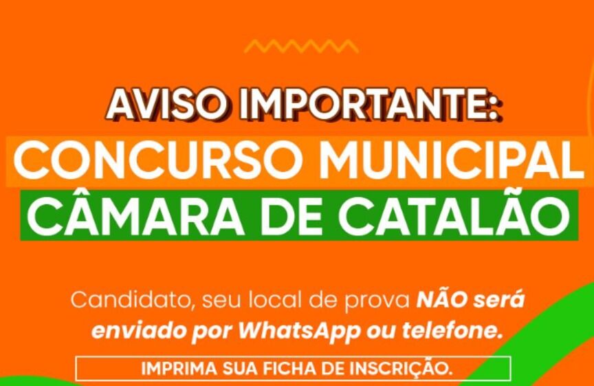 CatalãoCatalão25/03/2026CONCURSO CÂMARA DE CATALÃO: Locais de prova e horários já estão disponíveis, candidatos devem imprimir ficha de inscrição.